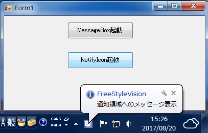 代わりの方法として私がまず考えたのは、NotifyIconを使ってバルーン通知(Windows10だとトースト通知)をおこなう方法です。