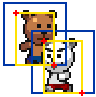 しかし、キャラクタごとに黄色い四角の大きさは異なることもあり、場合によってはスプライトのサイズそのものの大きさも異なることもあります。