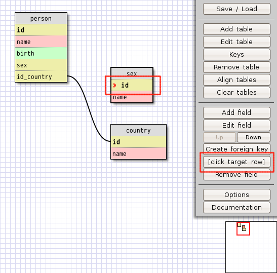 ボタンのラベルが「[click target table]」に変化するので、親テーブル(テーブル名部分)をクリックします。
