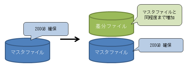 ちなみに、スナップショットの保存期間が長いと差分ファイルの容量が増大し、