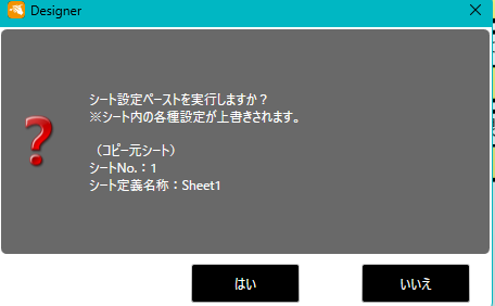 すると以下のように表示されるので、シート設定コピーを押下します。